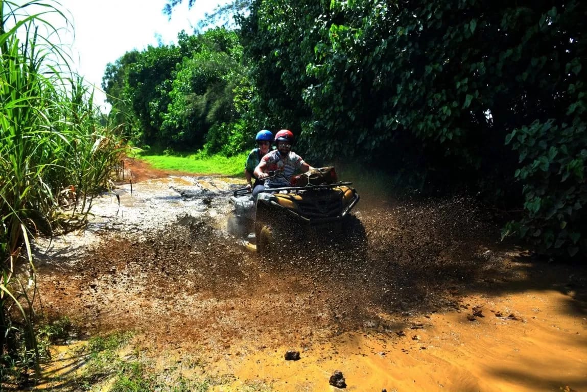 Специально разработанная для любителей острых ощущений и природы, двухчасовая поездка на квадроциклах позволит вам по-новому взглянуть на юг острова. В течение двух часов вы увидите такие достопримечательности, как вулканический утёс Gris-Gris, La Roche qui Pleure, водопад Rochester и многие другие удивительные места.
